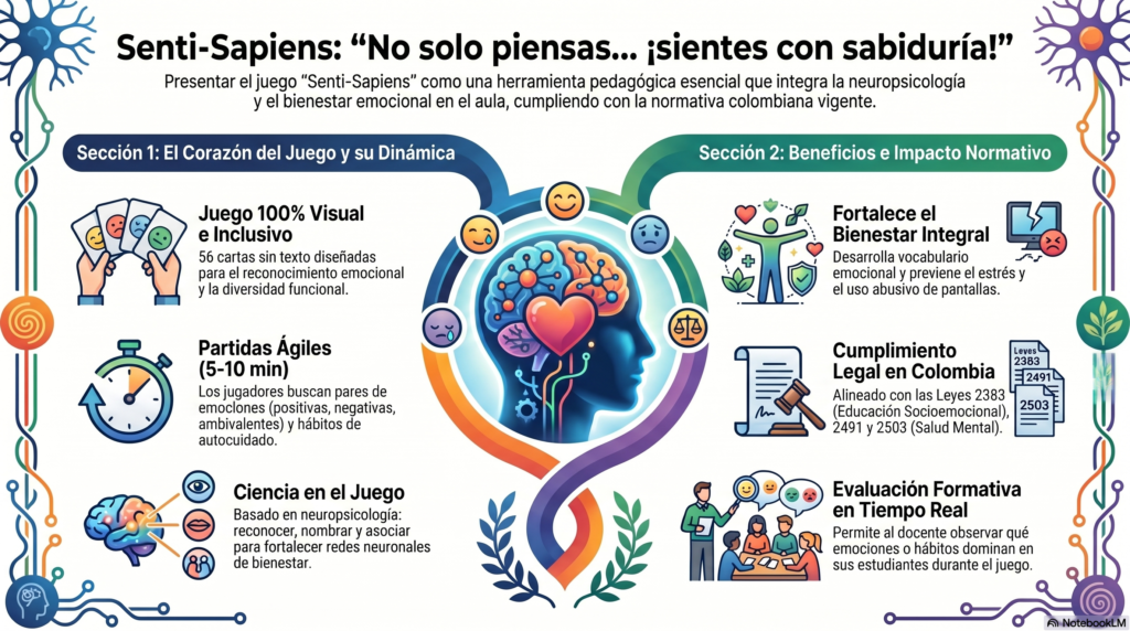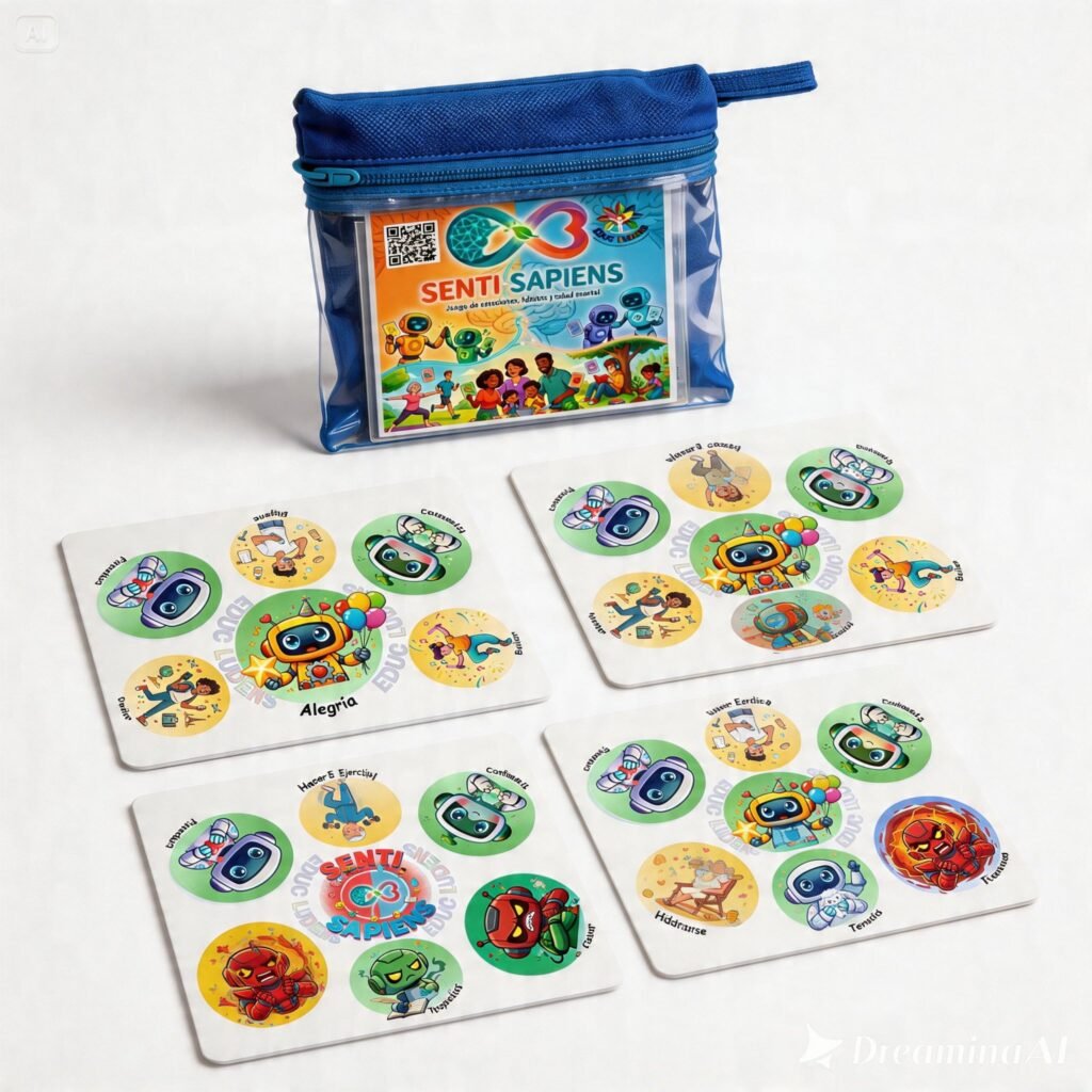 Imagina un espacio donde aprender a reconocer lo que sentimos sea tan natural, visual y emocionante como un juego de cartas. Senti-Sapiens te invita a descubrir que la verdadera evolución humana sucede cuando integramos la razón con el corazón, permitiéndote «sentir con sabiduría» y transformar cada emoción en una herramienta de crecimiento. En solo 10 minutos de juego, estarás fortaleciendo el bienestar y el autoconocimiento de quienes más quieres, rompiendo barreras y creando conexiones profundas que perduran toda la vida. ¡Atrévete a jugar, a nombrar y a evolucionar, porque vivir bien es un arte que se cultiva compartiendo!.